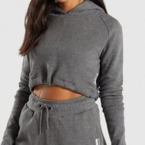 Item: Women's Slounge Drawcord Cropped Hoodie Sweatshirt Gray