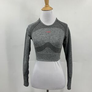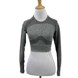 Gymshark Top Womens S Small Gray Heather Flex Long Sleeve Cropped Cutout Back