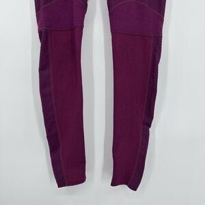 Gymshark True Texture women’s leggings in Dark Ruby. The Gymshark True Texture Dark Ruby Mid-Rise Leggings are a compression style legging known for their supportive fabric and flattering fit, designed to enhance your physique. They are made with a seamless knit jacquard pattern that provides form-shaping support and a ribbed structure for a unique look. The fabric is also soft, stretchy, and thick, making them comfortable and durable. Size small. Excellent used condition. No flaws detected. See measurements for proper fit.