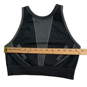 Details: High neck, racerback, seamless design, cropped fit, contrast stitching, logo detail on sides