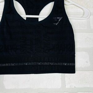 Stay strong and fearless in the Vision Sports Bra. Feel the freedom and breathability of the ventilated fabric, stay fresh in sweat-wicking finishing, and feel cheered on by all-over jacquard branding on top. The true armor of the Gymshark lover; stand strong and sweat to rep your community in Vision. Racerback design, Medium Support, Sweat-wicking finishing, All over seamless jacquard, Gymshark wordmark design, Breathable, ventilating mesh structure, 93% Nylon, 7% Elastane, We've cut down on our use of swing tags, so this product comes without one. This has been gently used and well cared for. 11.25” chest, 11.6 length. #826 3.3