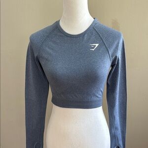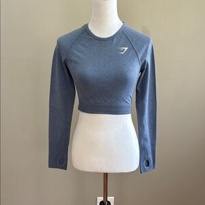 Gymshark Vital Seamless 2.0 Blue Gym Yoga Long Sleeve Crop Top Size M