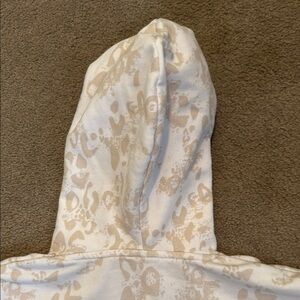 Stylish Gymshark hoodie. White base with subtle cream animal print pattern. Comfortable and trendy. It has pockets in the front and a drawstring hood. Great condition. Tag reads XS but it runs larger.