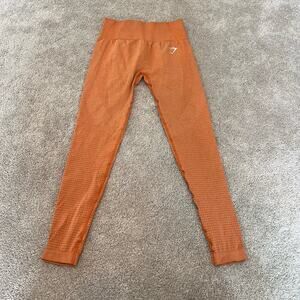 All orders ship within 1-3 business days. These women's leggings are made by Gymshark. Color is light orange. Size is unknown but I suspect it is S/XS, see measurements. Excellent condition. Make me an offer! Although clothing is not visibly soiled we recommend washing all preloved items before wear.