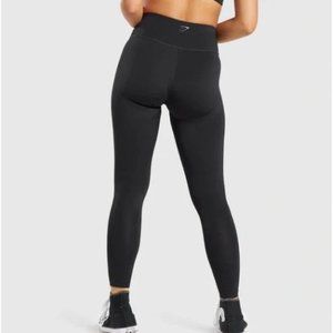 Gymshark ‘EXO Ultra’ leggings. High waist. Silicone grip print for barbell grip. Silicone strip inside waistband to keep it in place. Supportive fit and fabric. Silicone logo at back of waist. Black in color. 80% polyester. 20% elastane. Size small.