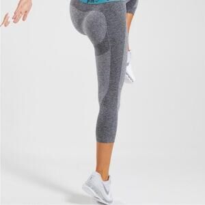 Tags- cropped leggings, legging capris, summer workout leggings, lifting leggings, anti thigh chafe legging capris, gymshark capri leggings, gymshark low rise cropped leggings, gymshark flex cropped low rise turquoise charcoal shaping leggings Capri