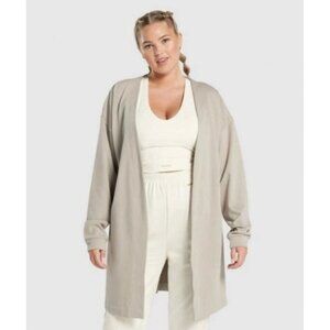 Gymshark Women's Gray Oversized Cardigan Robe Open Front Long Sleeve Size XS