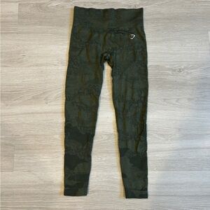 Gymshark Women’s Green Textured Adapt Camo Seamless Leggings - Small