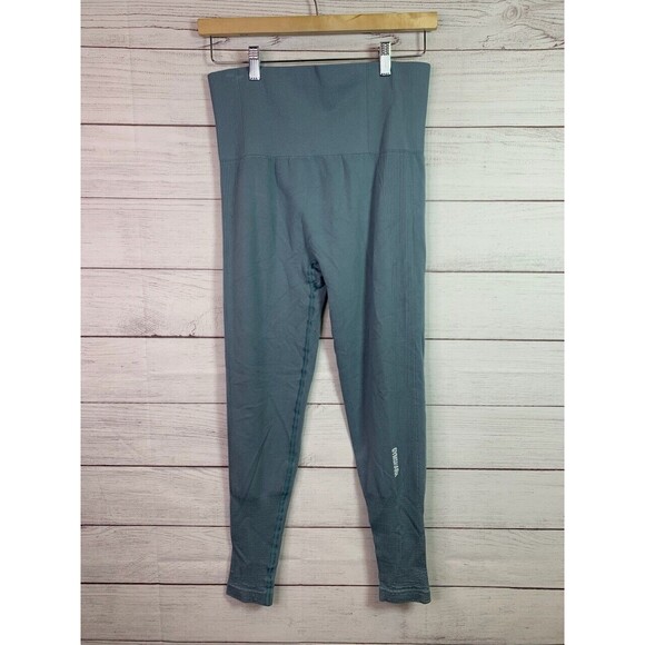 Gymshark Women's Power Down Leggings Size L Turquoise Seamless High Rise Ribbed