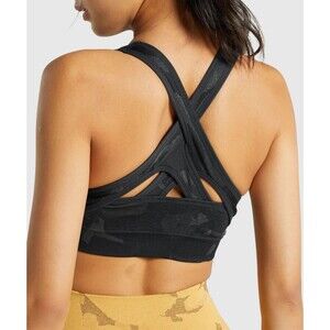 Gymshark Womens Sports Bra Black Camo Seamless Racerback Activewear Size M NEW!