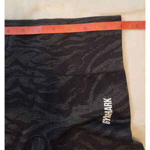 These Gymshark Zebra Print Seamless Leggings are a stylish and functional addition to any woman's activewear collection. The high-waisted design and compression fit provide support during workouts, while the black and gray animal print adds a trendy touch. Made from a blended fabric, these leggings are machine washable and feature a pull-on closure for easy wear. With a 21.5-inch inseam and skinny leg style, they are perfect for gym training in any season.