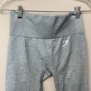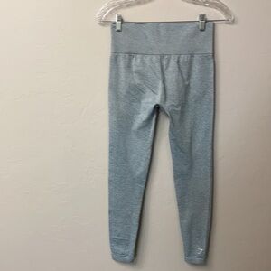 Gymshark blue crop seamless leggings.No size tag so see measurements.Good condition.I think they are a small.Inseam is 22” and rise is 9.5”. Laying flat waist is 12.5”