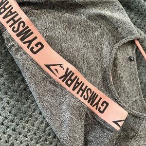 Gymshark crop top in size large (No tag) in the color grey and pink, some lightly pilling from one side of the elastic, caused by my slim waist trainer.