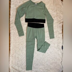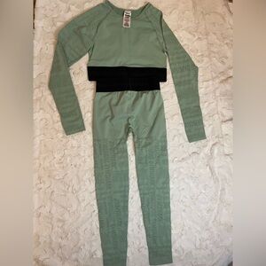 Really good condición size top médium and legging small like new in great condición fast shipping like new súper cute . I accept offer