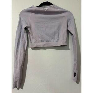 Gymshark lavender purple set long sleeve cropped top leggings size S has a small smudge on top collar no rips or stains on leggings cute set
