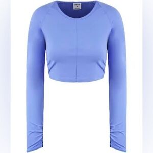 Currently sold out, this crop top in Intense Beautiful Blue purple blue color from workout brand, Gymshark x Whitney Simmons Collection. The criss-cross back leaves a little open back to keep thins cool. It features ruched long sleeve cuffs and sides. Gently worn and in great condition. Women’s size medium.