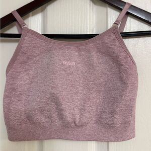 Gently used Gymshark Vital Seamless Bralette in a beautiful mauve pink marl color. Features adjustable straps, a seamless stretchy fit, and light support—perfect for low-impact workouts or everyday comfort. Logo detail on the front and bold Gymshark branding on the back.