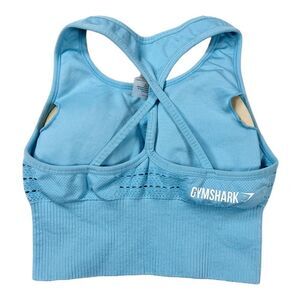 Super cute pre-owned Gymshark Vital Seamless Light Blue Sports Bra Long Line Size XS. Strappy back. Removable padding, comes with pads. No stains or holes. Please ask all questions before purchasing.