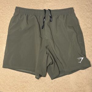 Gymshark Women’s Athletic Gym Shorts Dark Green Logo Pockets Stretch Size M