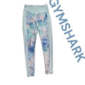 Gymshark Womens Mid Rise Efflorescent Floral Print Tropical Leggings Blue Medium