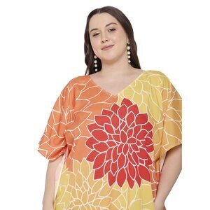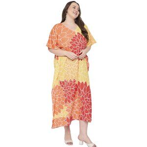 Gypsie Blu Floral Printed Plus Size Caftan Dress Summer Beach Cover Up Dresses