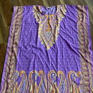 Gypsie Blu Kaftan in Purple & Yellow Design One Size Tunic Boho Casual Beach