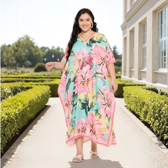 Gypsie Blu Loose Caftan Dress Long Maxi Cover Up Dresses Kimono Sleeve for Women