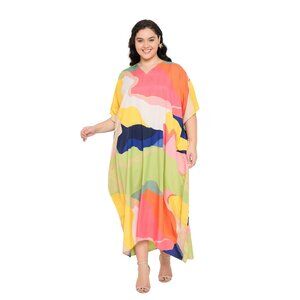 Gypsie Blu Multicolor Caftan Dress Stylish Comfy Maxi Kimono Sleeve Dresses