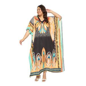 Gypsie Blu Multicolor Plant Caftan Dress Plus Size Women Maxi Cover Up Dresses