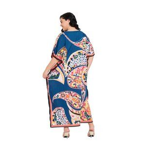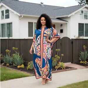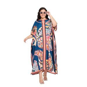 Gypsie Blu Paisley Printed Caftan Plus Size Dress Loose Comfy Maxi Cover Up Gown