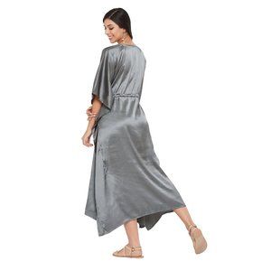 Gypsie Blu Satin Caftan Maxi Dress Grey Caftan Cover Up Dresses for Night Wear