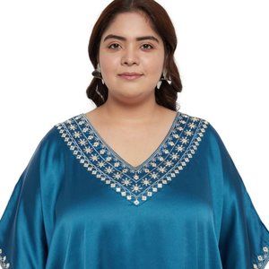 Gypsie Blu Solid Satin Embroidery Corsair Blue Women Kaftan Dress Plus Size Maxi
