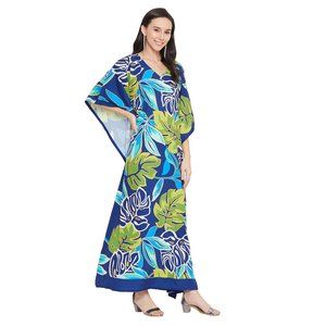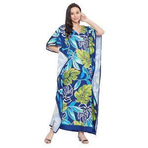 Gypsie Blu Women Plus Size Leaf Print Kaftan Maxi Dress for Beach Party Cover Up