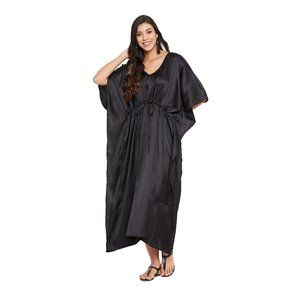 Gypsie Blu Women Satin Caftan Dress Beach Cover Up Maxi Dresses for Summer Wear
