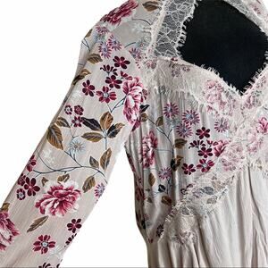 Gypsies & Moondust Floral Peasant Top Tan Size M