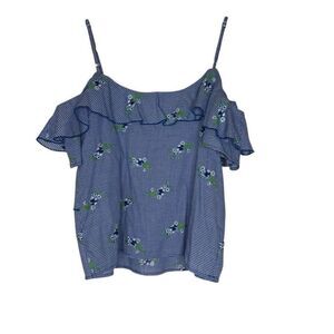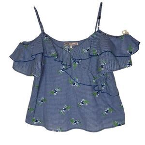 Gypsies & Moondust Gingham Embroidered Off Shoulder Ruffled Top Sz L Country