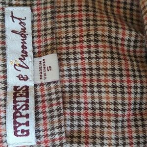 Gypsies & Moondust Jumpsuit Houndstooth Plaid Pockets Size Small Tan Academia