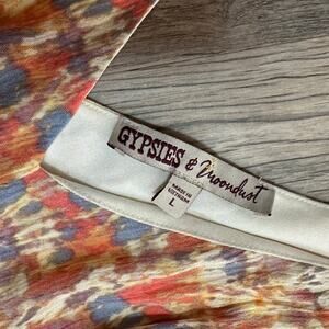 Gypsies & Moondust Mini Sundress Tie Shoulder Straps Womens Large Orange Blue