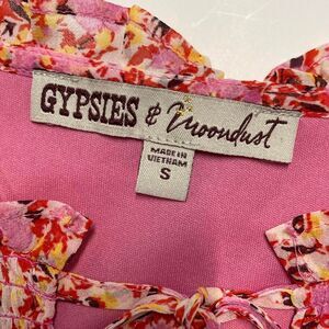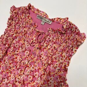 Gypsies & Moondust Pink Floral Tiered Ruffle Dress Sleeveless Elastic Waist