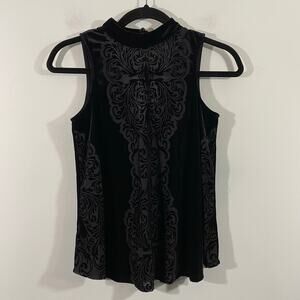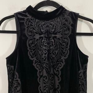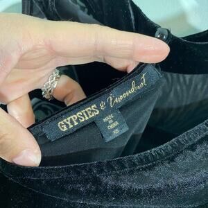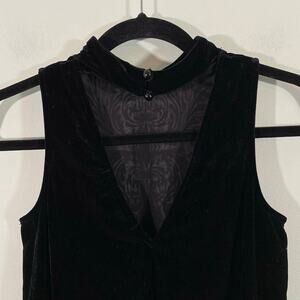 Gypsies and Moondust Black Velvet Sheer Detail Sleeveless Open Back Blouse Sz XS
