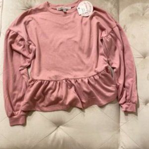 Gypsies and Moondust Long Sleeve Drop Shoulder Peplum Sweater in Pink
