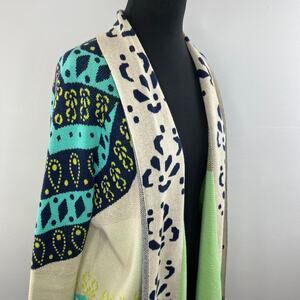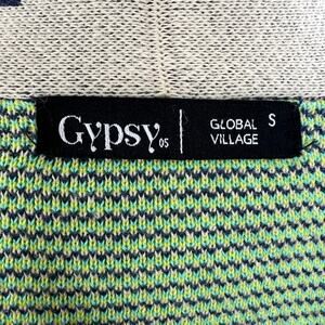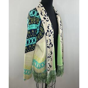 Gypsy 05 Global Village Green Cream Long Sleeve Open Fringe Cardigan Sweater S