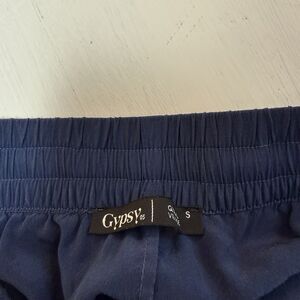 Gypsy 05 Global Village Silk Pants S Pull-On Drawstring 100% Navy Pockets Luxury