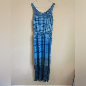 Gypsy 05 Silk Beachy Blue Boho Embroidered Printed Maxi Dress