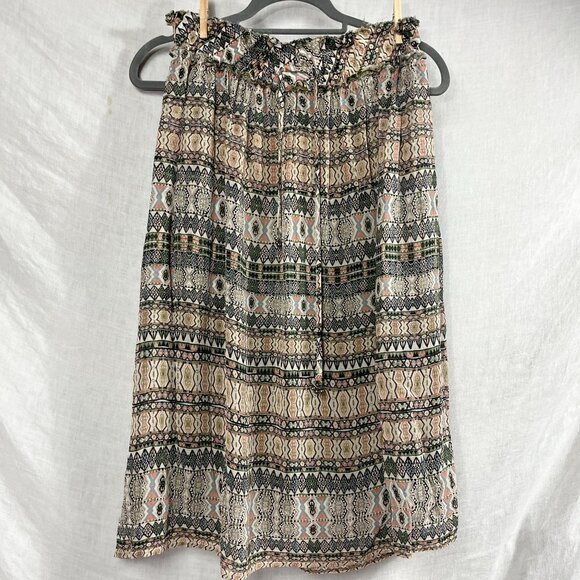 Gypsy 05 Silk Gypsy Midi Skirt Womens S/M Pockets Bohemian Neutral Southwestern