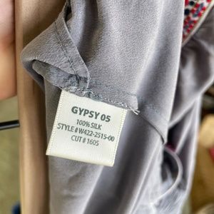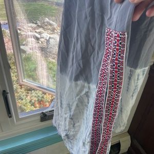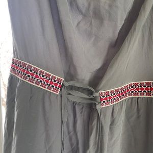 So soft silk, boho beauty, stretch drop waist, crisscross tie front, side slits both sides, embroidered decoration