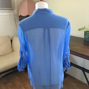 ✨Gypsy 05 Dianne Silk button up sheer top. Sold at Anthropologie. Size small. In gently used excellent condition. Can roll down the sleeves to wear as full sleeves. Beautiful shimmery pearlescent buttons. This top will make you feel like your floating. Looks great with jeans and flats! 100% SILK. Shoulders 17" this top is almost boyfriend style waist is 18" hips 18.5" total length 25.5" It fits very YFB, loose and hanging, but is also translucent so you can wear a tank under it.