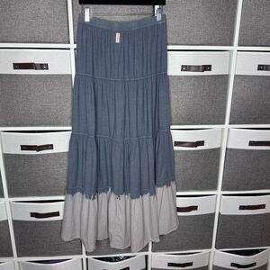 Gypsy 05 Tiered Gathered Boho Style Skirt Size Small. Chambray blue on top then a dipped gray on bottom.