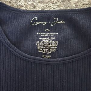 Gypsy and Jade sleeveless ribbed black two snap body suit.