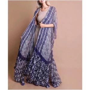 Gypsy Brown Paisley Ruffle Long Kimono Cover up
